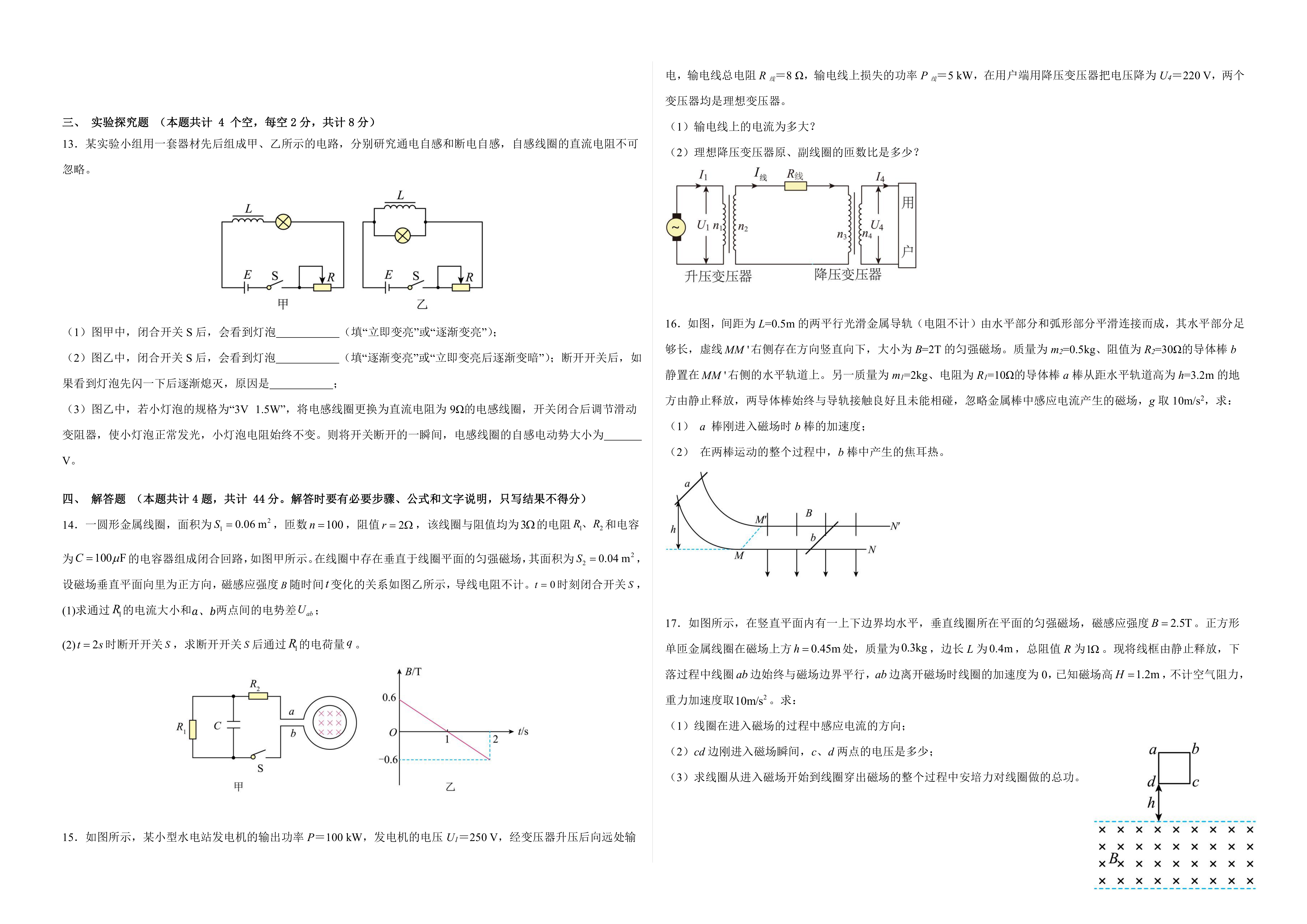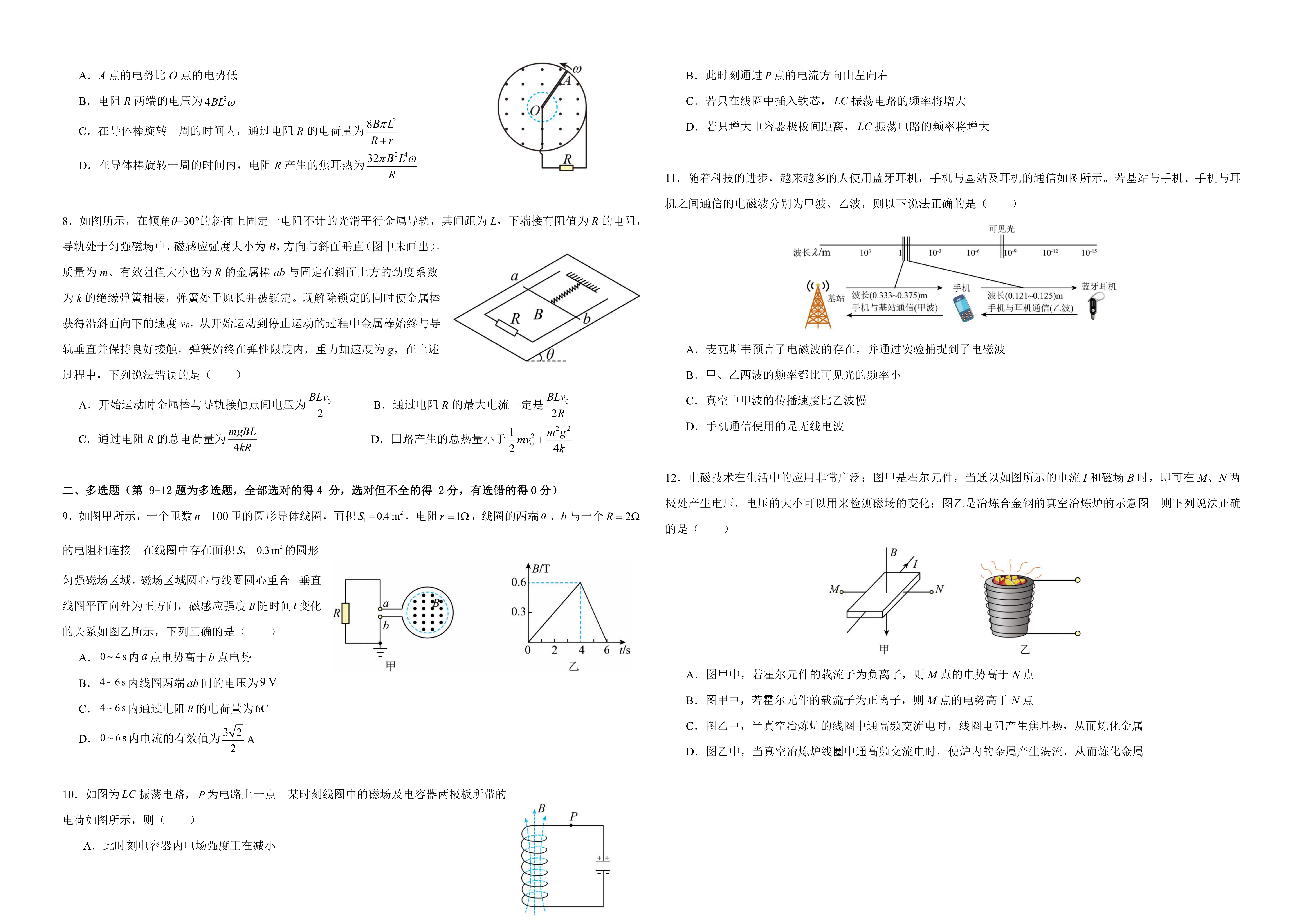 新疆乌鲁木齐市第二十三中学等校2024-2025学年高二下学期3月月考物理试卷(含解析)