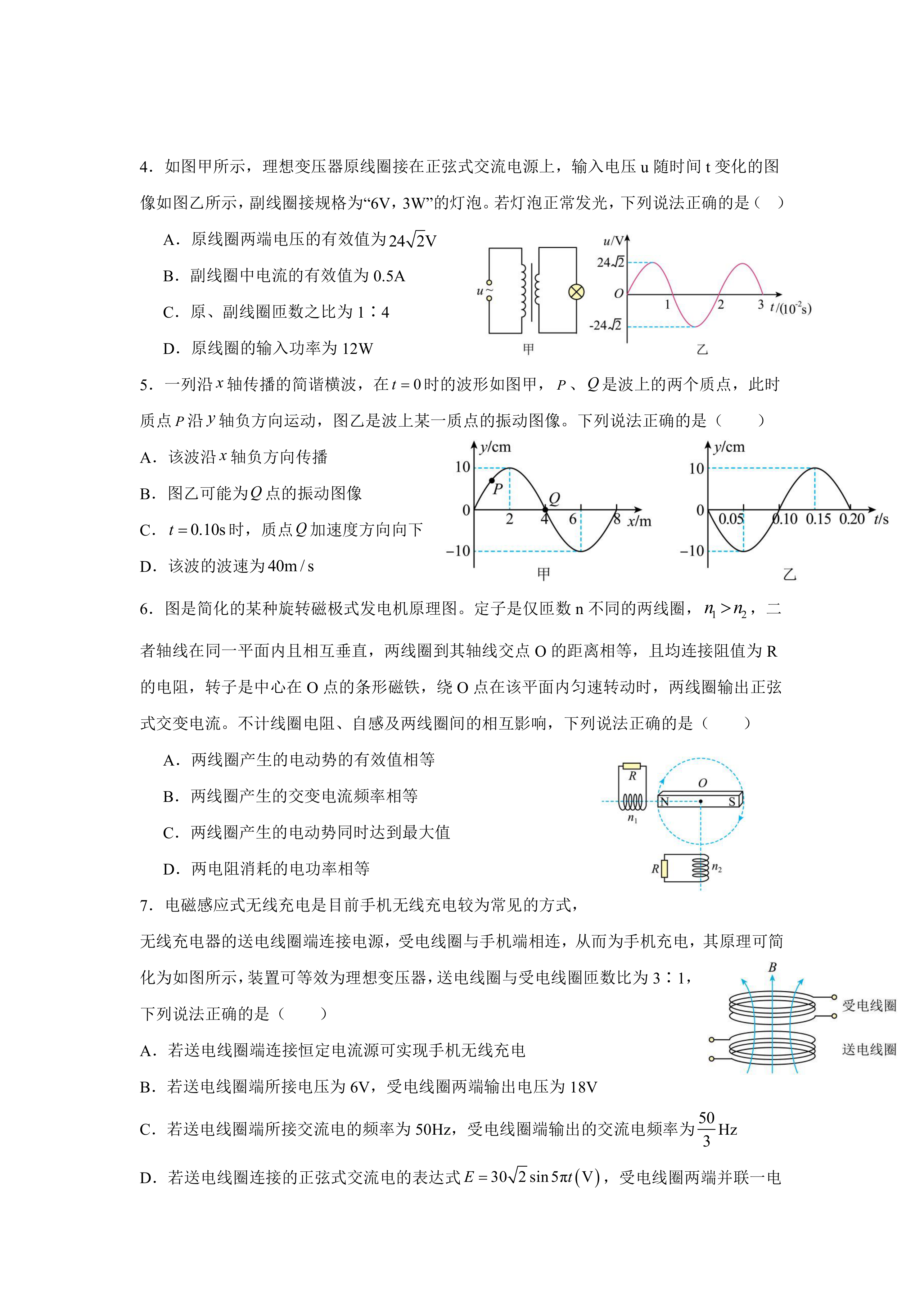 广东省清远市南阳中学2024-2025学年高二下学期第一次月考物理试卷(含解析)