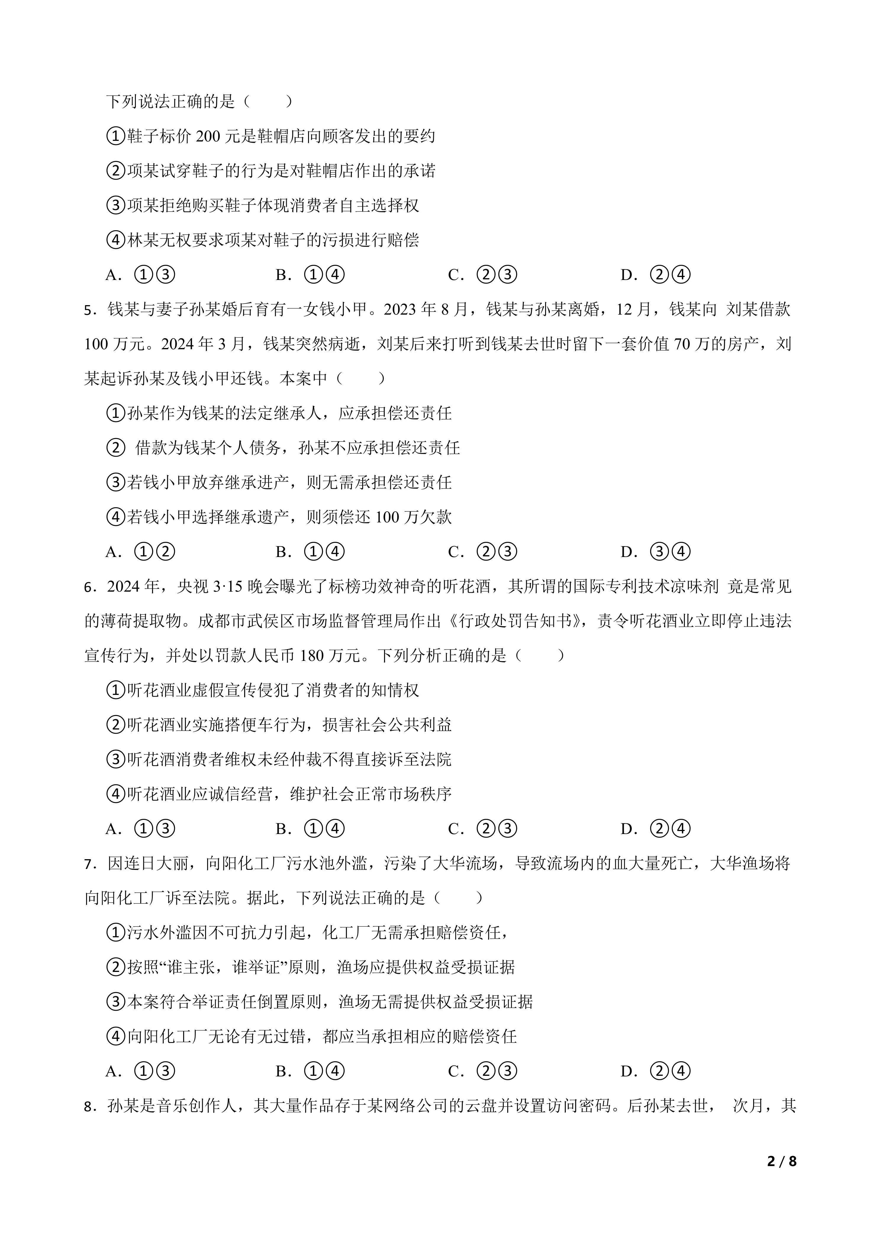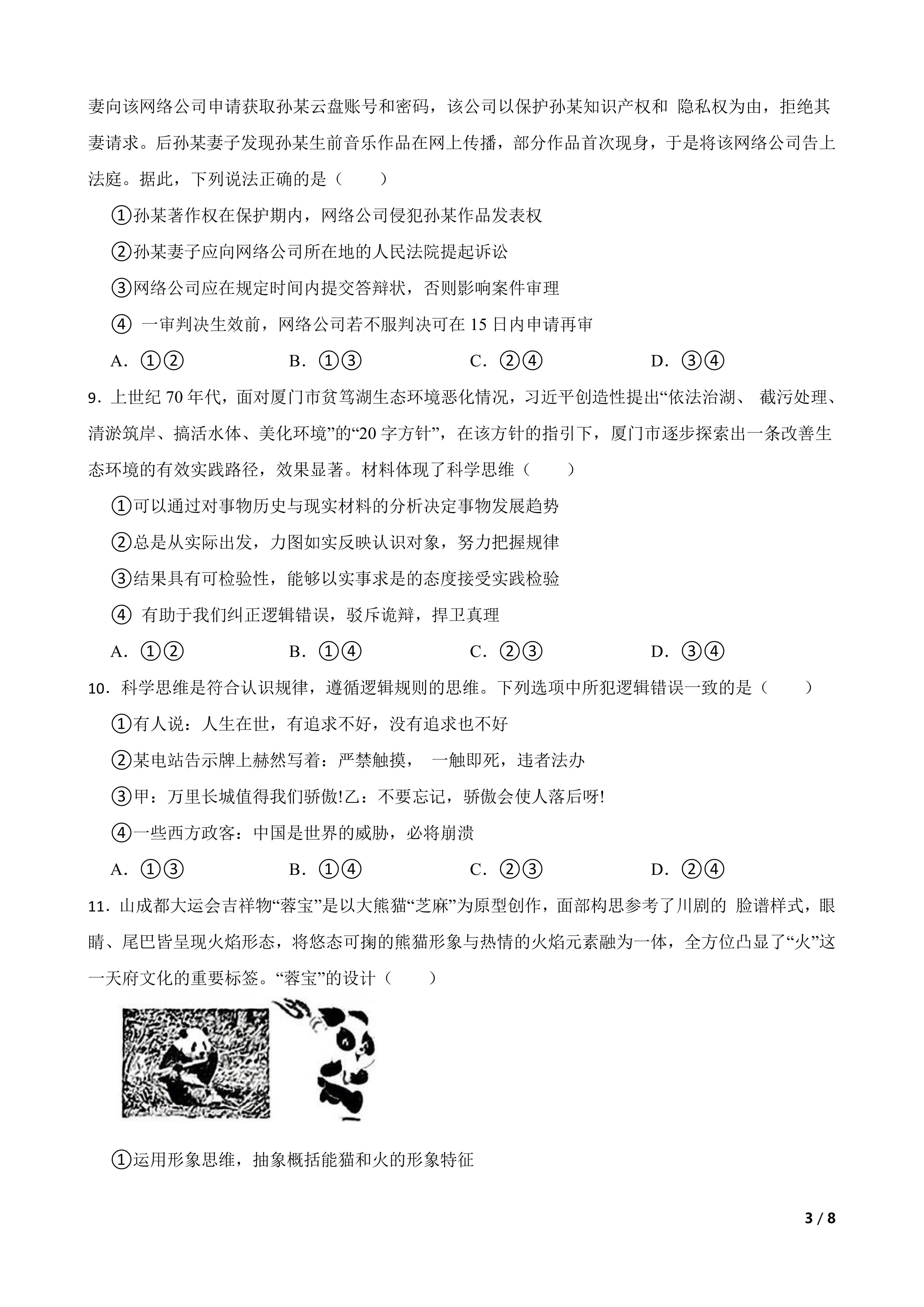 山东省淄博市2023-2024学年高二下学期期末考试思想政治试题