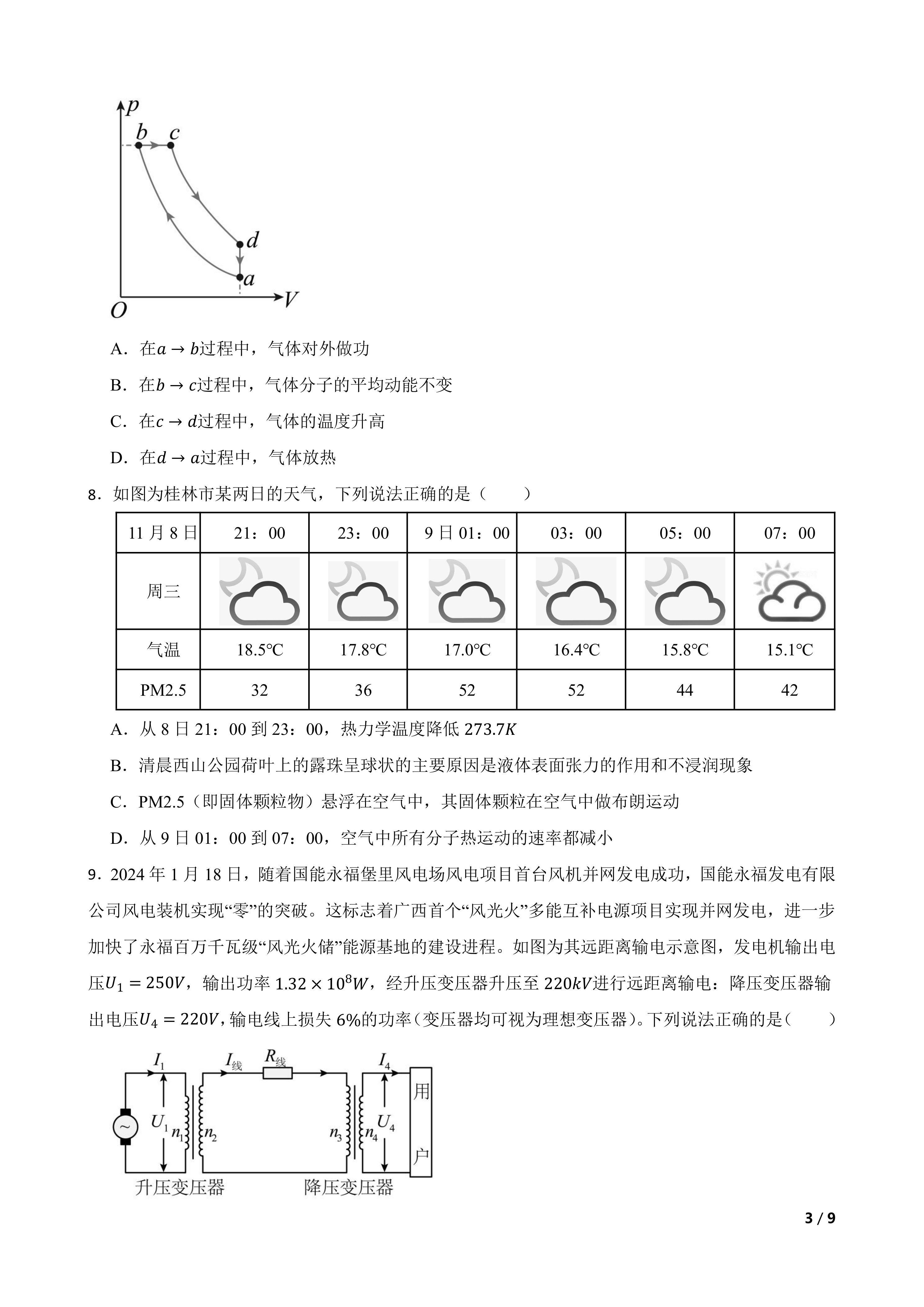 广西桂林市2023-2024学年高二下学期期末考试物理试卷