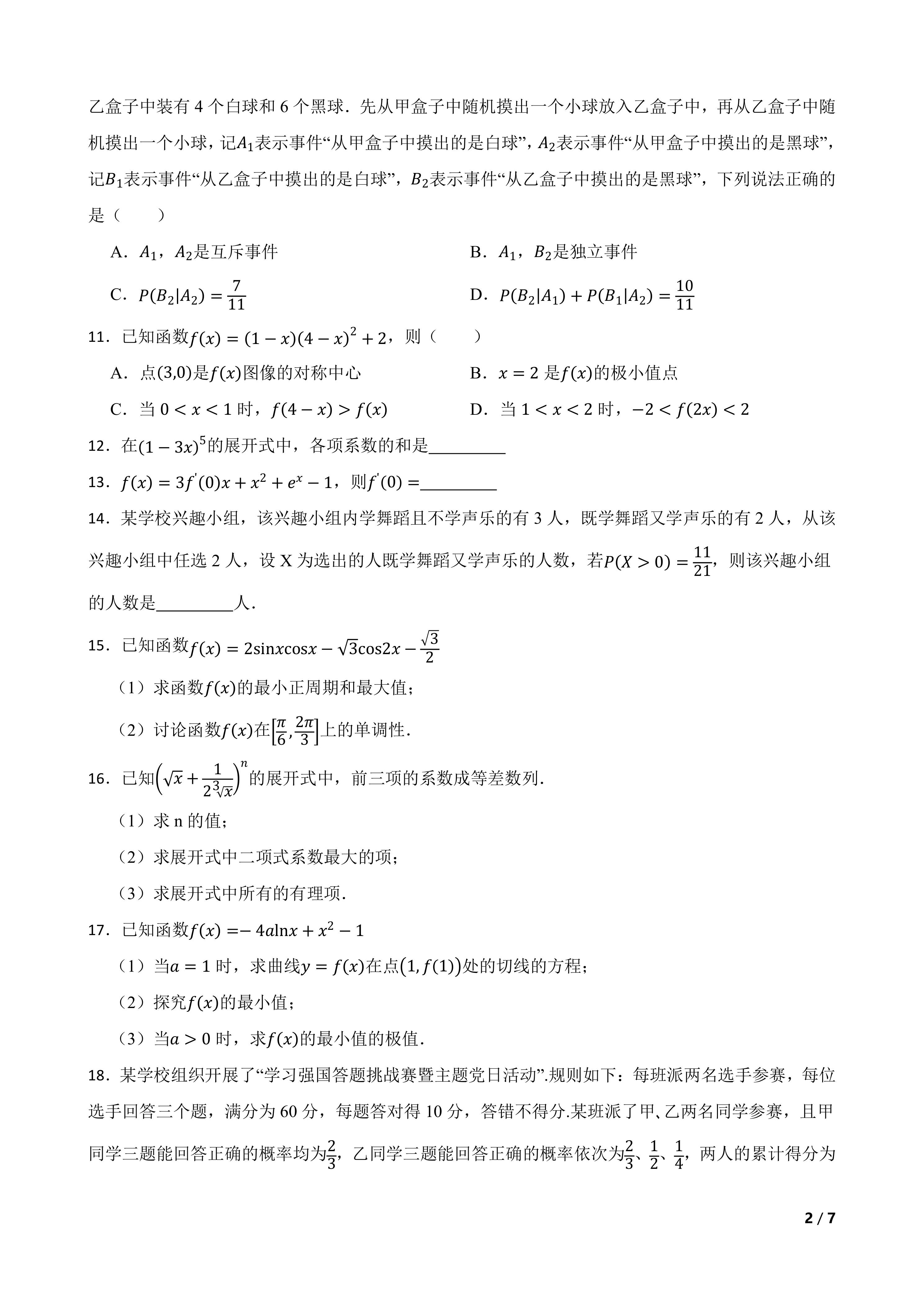 浙江省宁波市三锋教研联盟2024-2025学年高二下学期期中联考数学试题