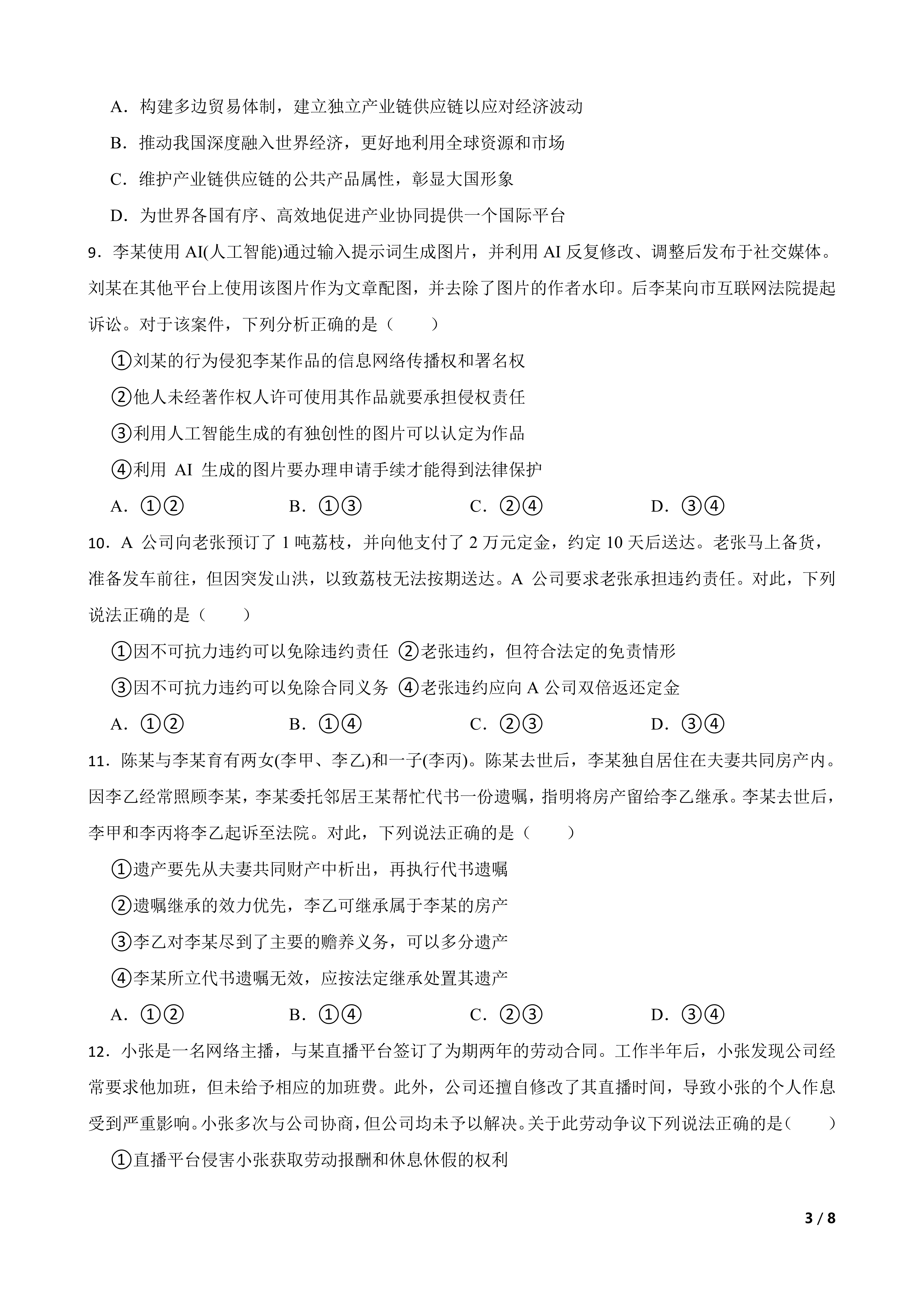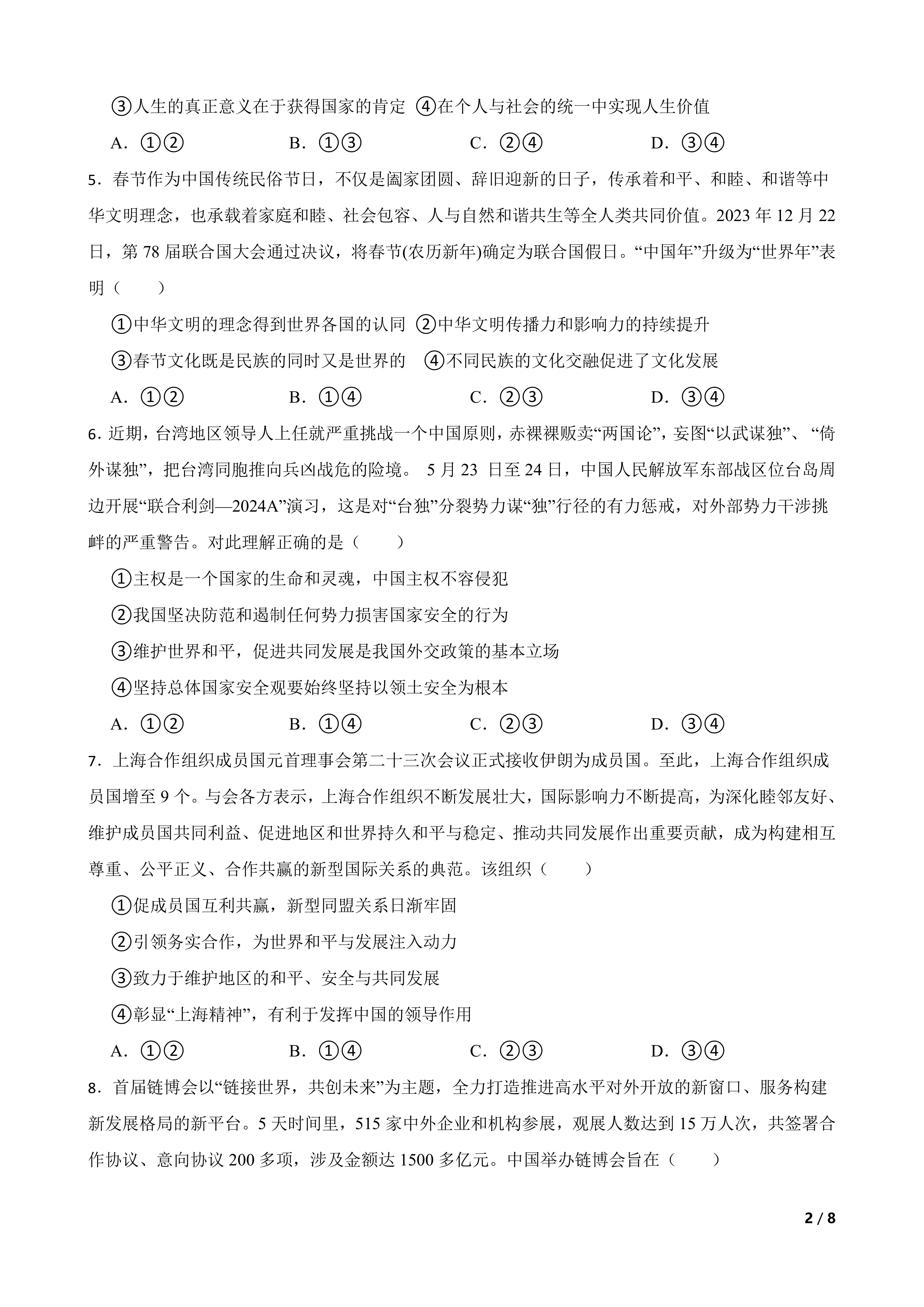 广东省四校(华附、省实、广雅、深中)2023-2024学年高二下学期期末联考思想政治试题