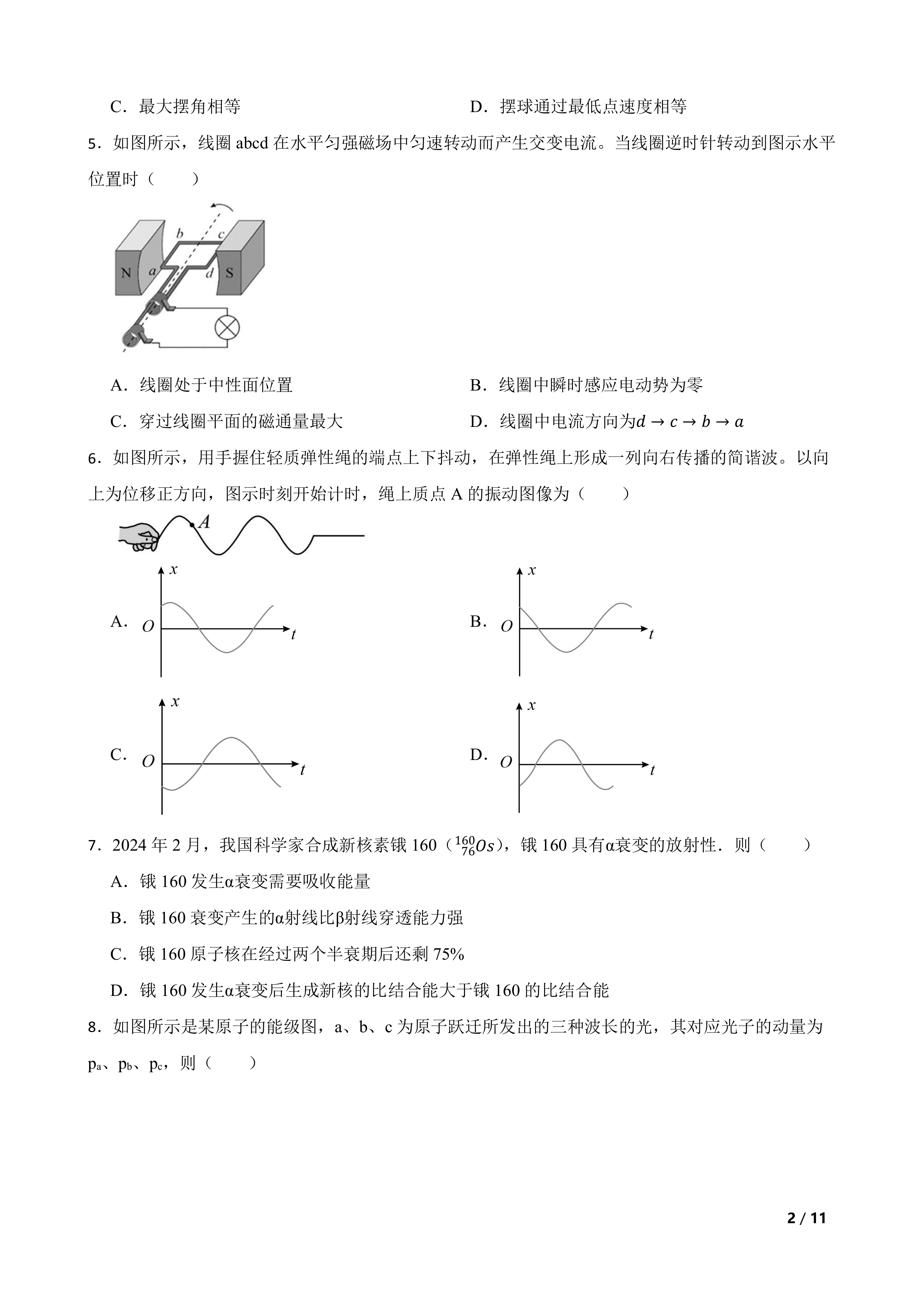 江苏省常州市2023-2024学年高二下学期期末物理试卷