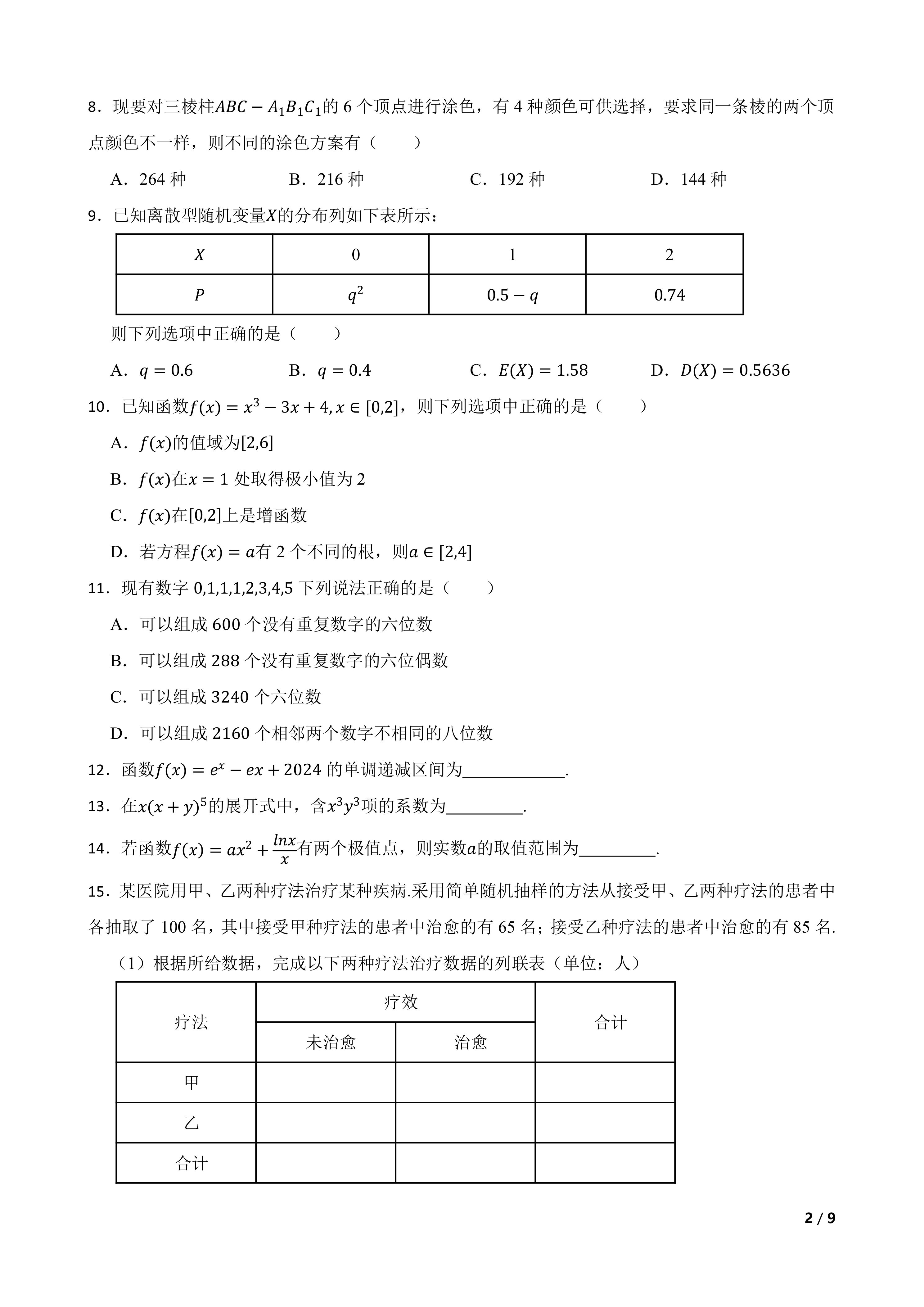 广东省清远市2023-2024学年高二下学期期末教学质量检测数学试题