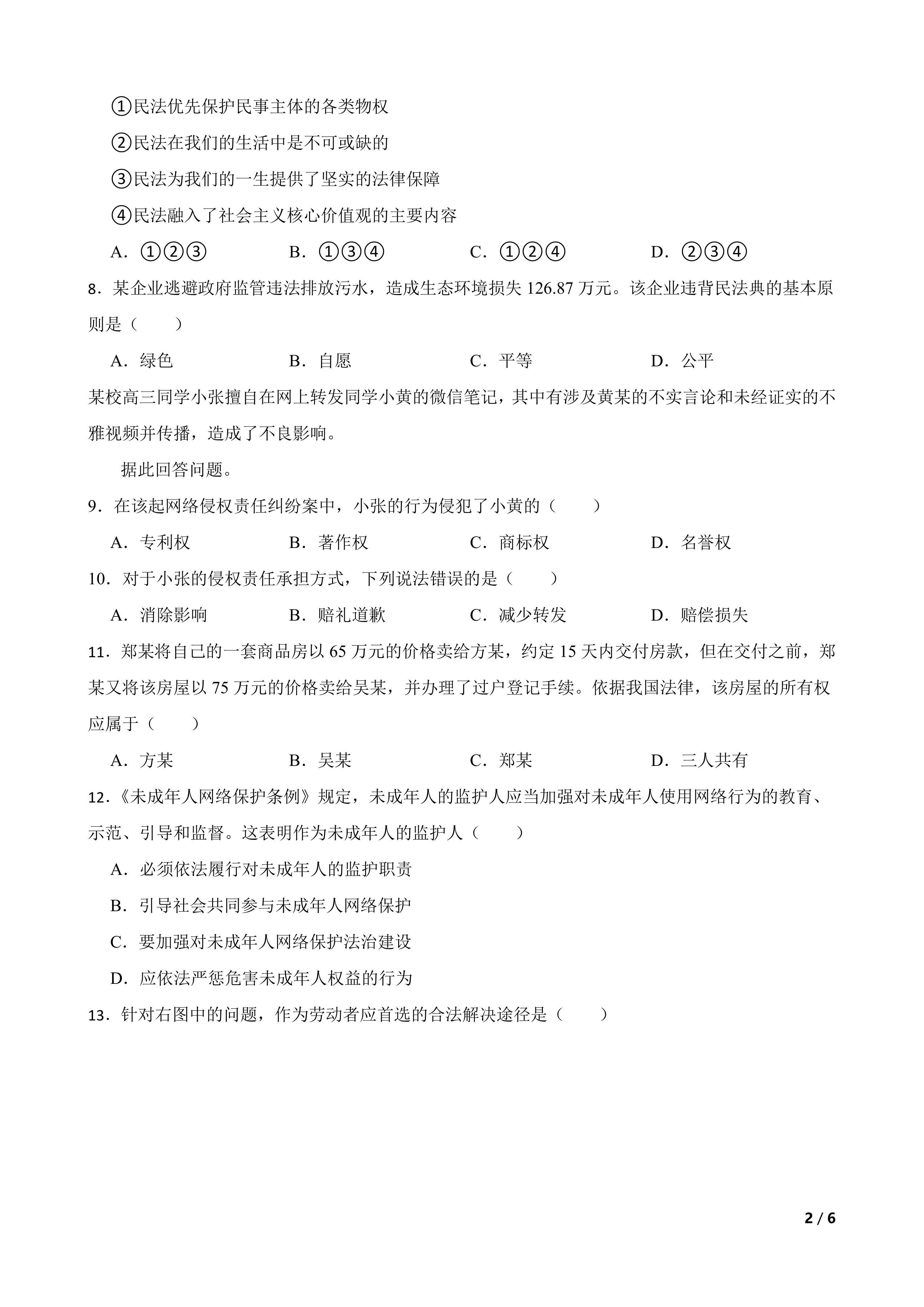 天津市部分区2023-2024学年高二下学期期末考试政治试题