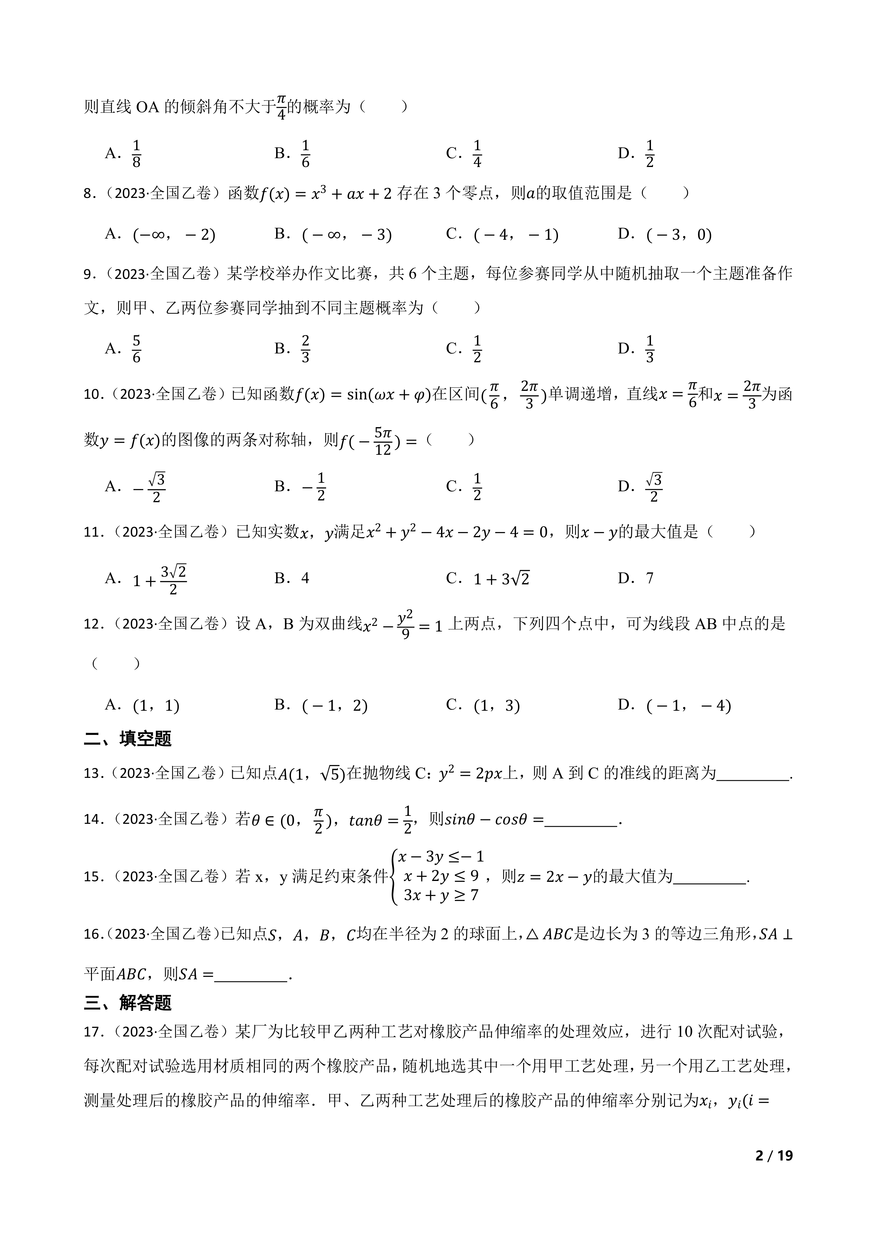 【高考真题】2023年普通高等学校招生全国统一考试(全国乙卷)文科数学