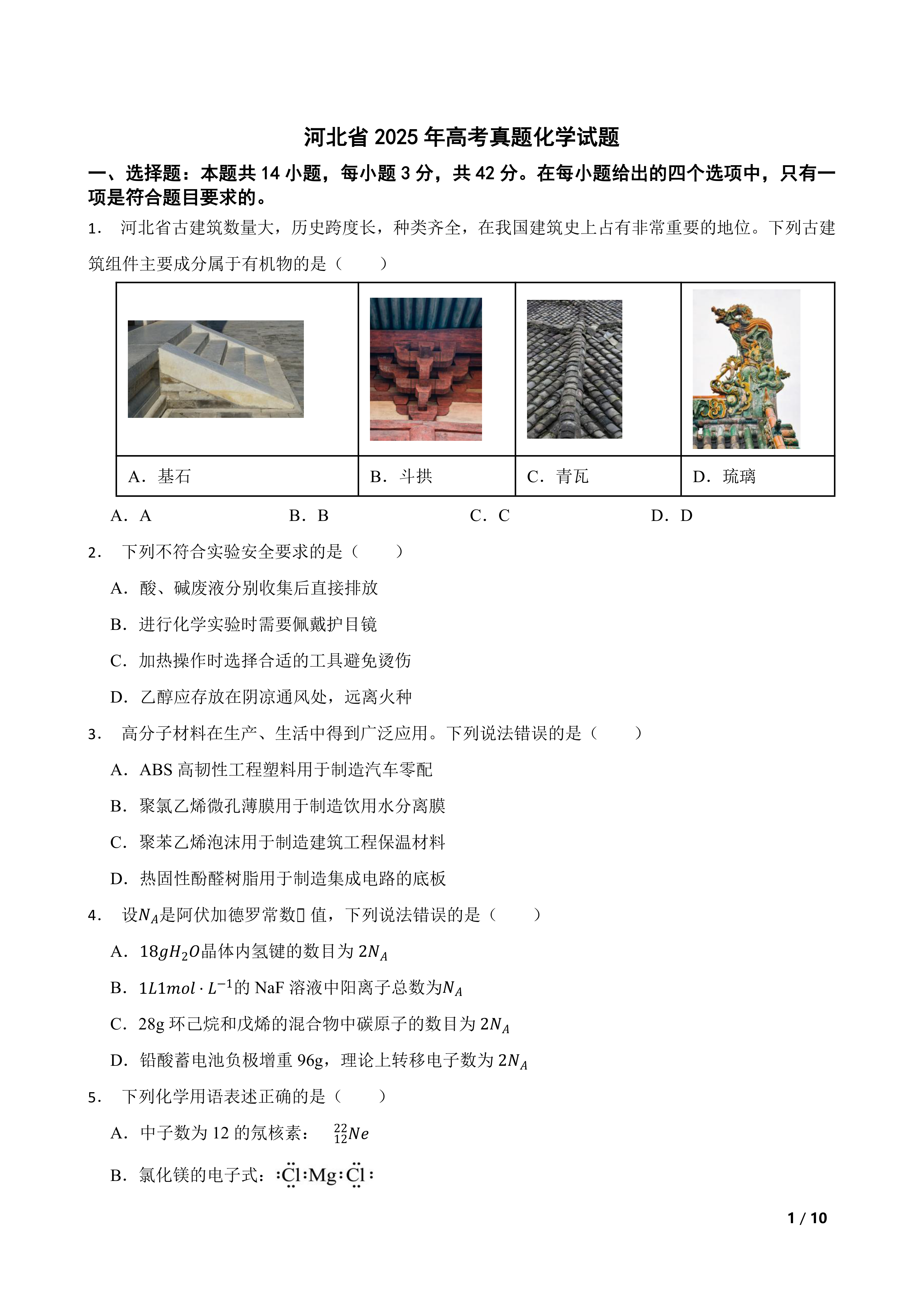 【高考真题】河北省2025年高考真题化学试题