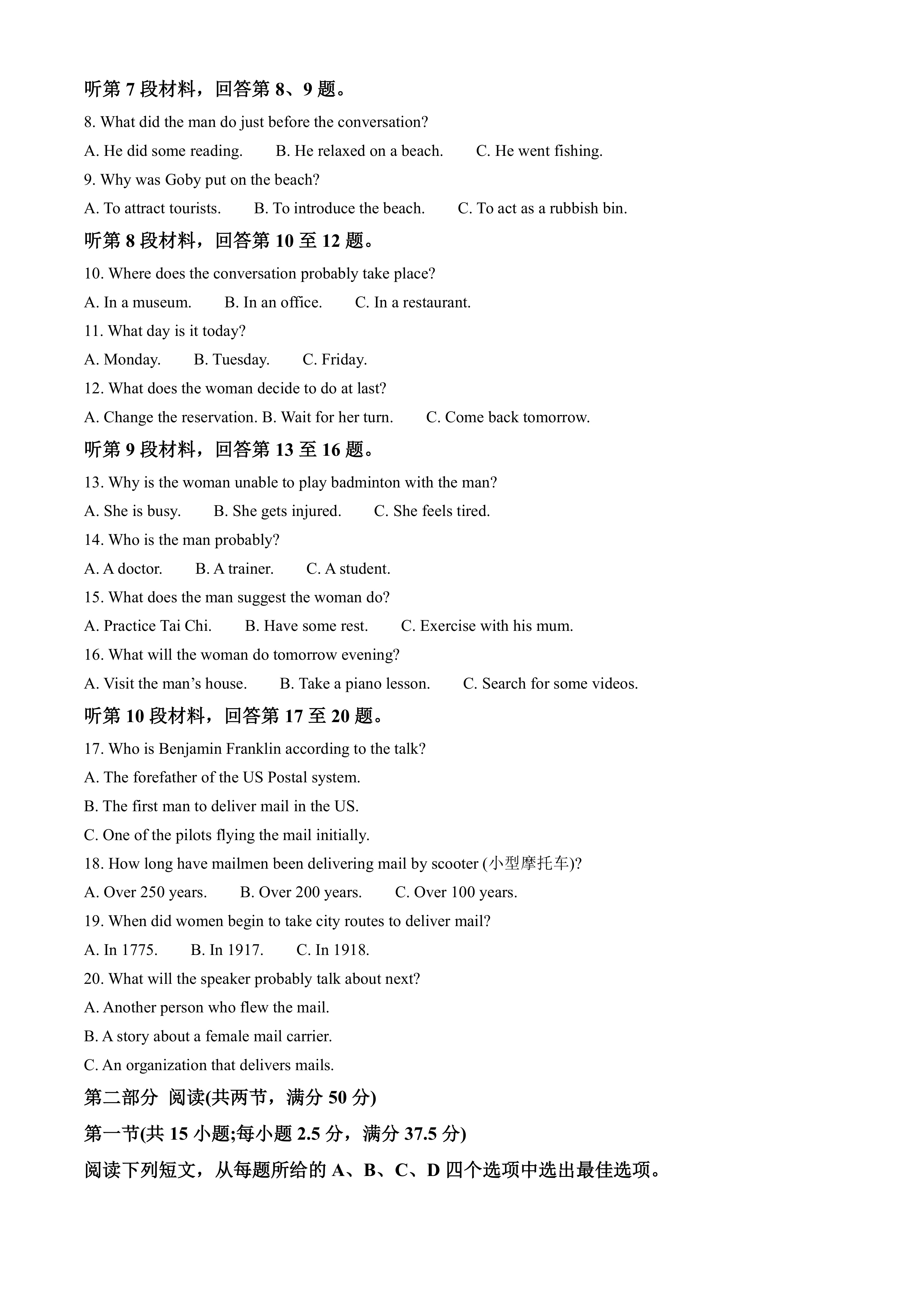 山东省济南市2024-2025学年高三下学期开学英语试题(含答案,无听力音频无听力原文)