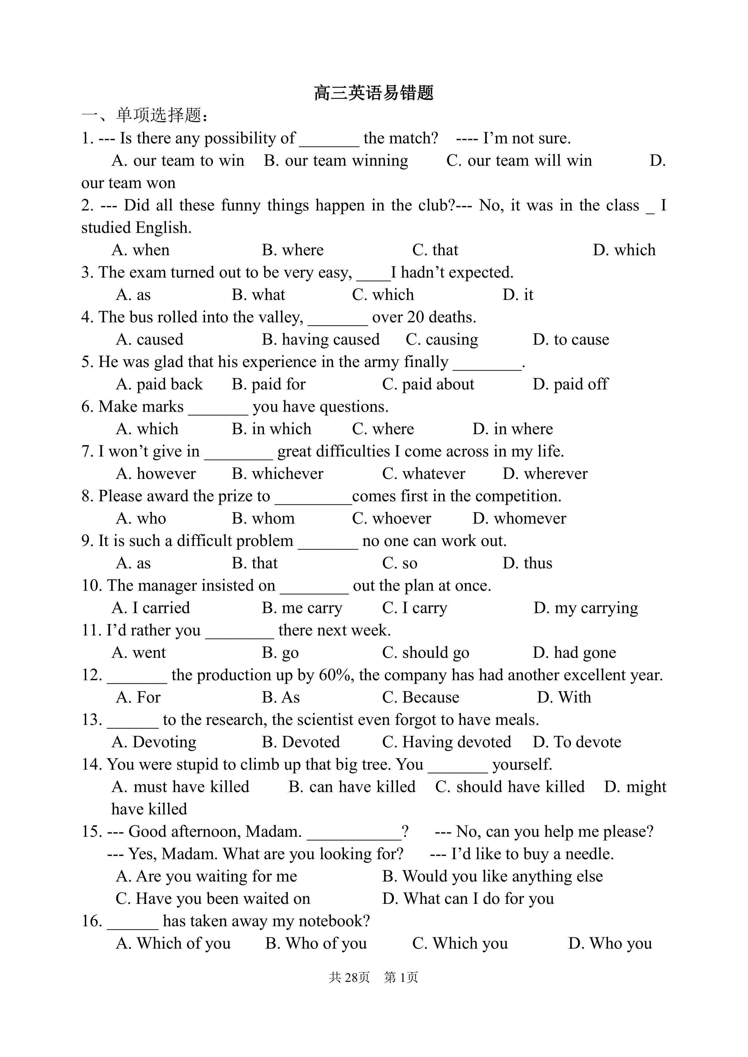 高三英语易错题汇总