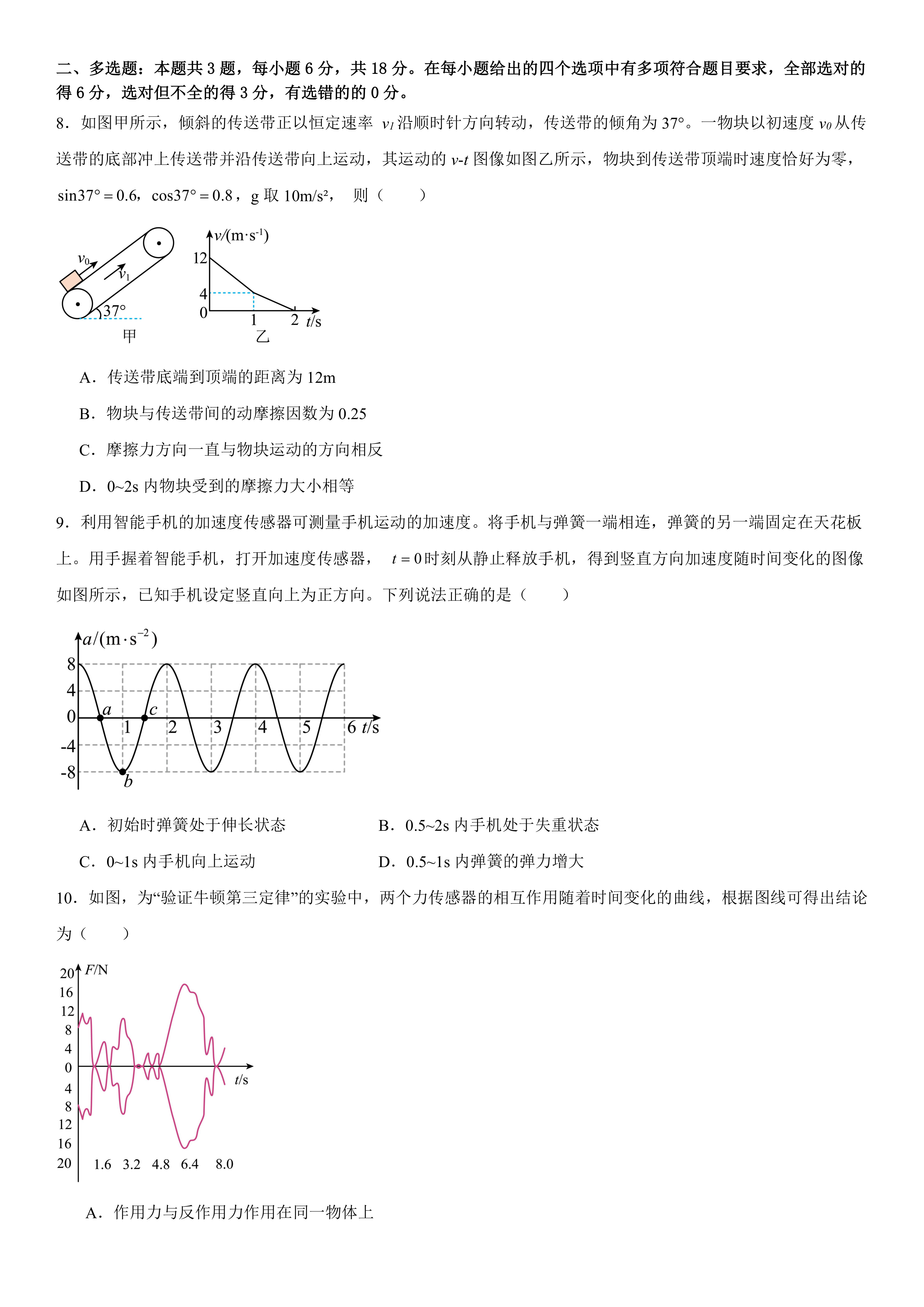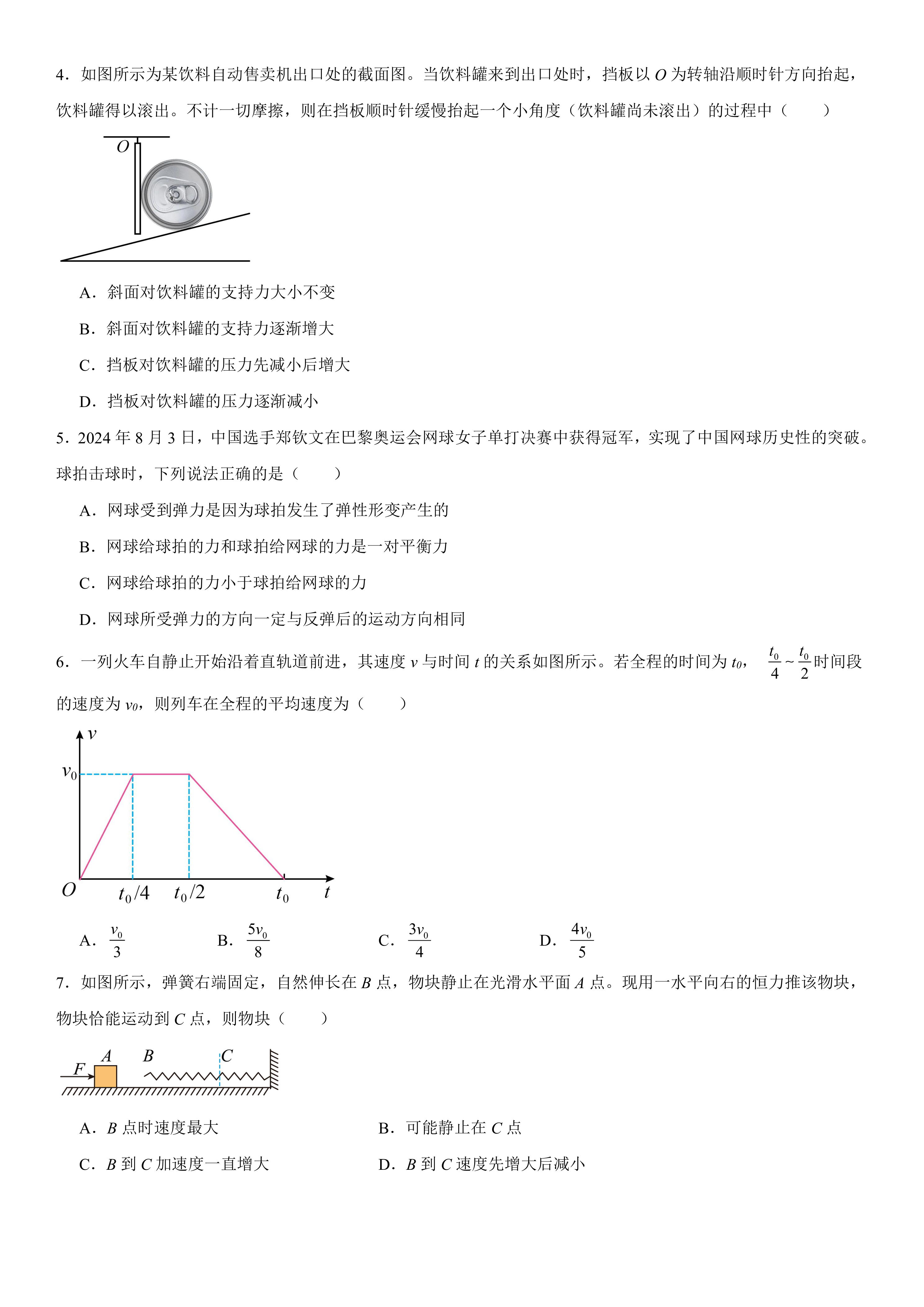 2024-2025学年广东高一物理下学期开学模拟试卷(含解析)