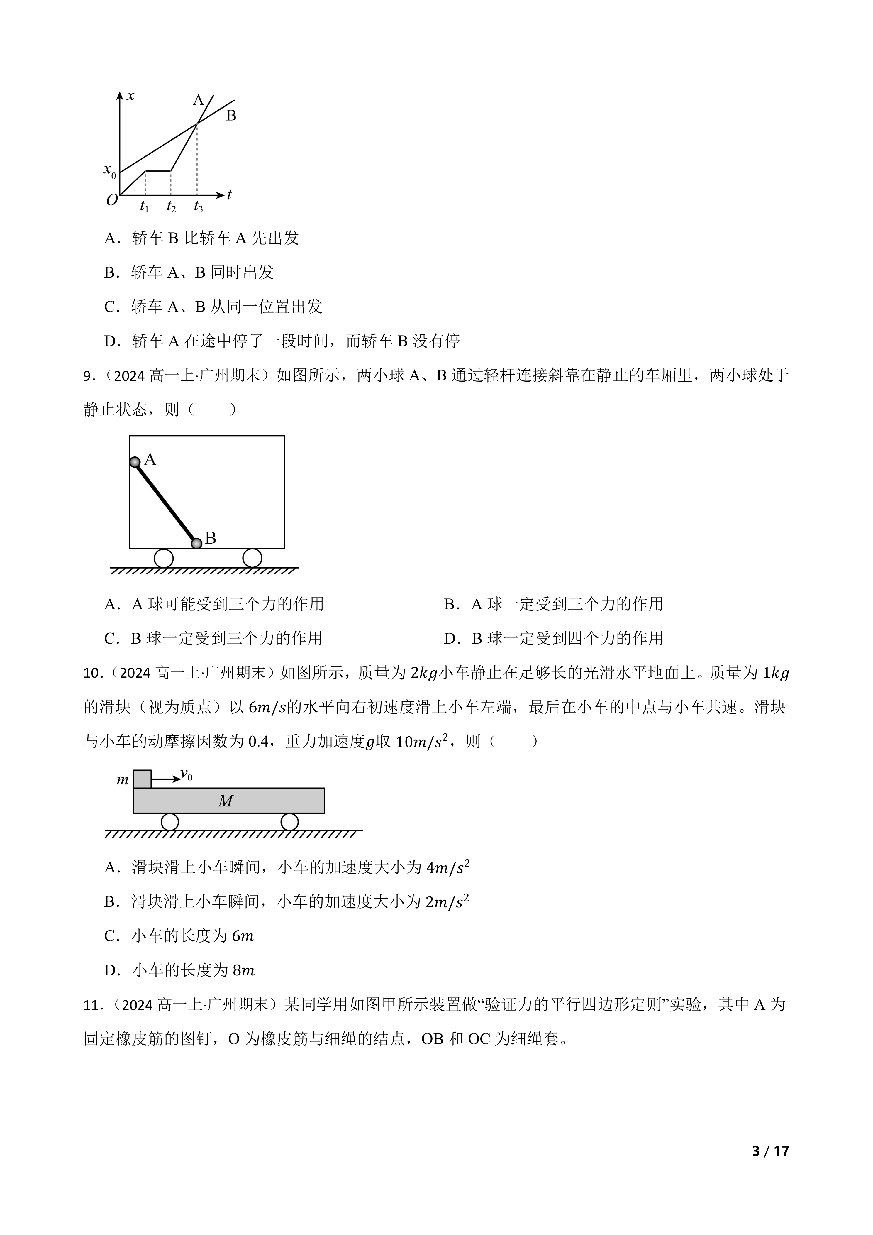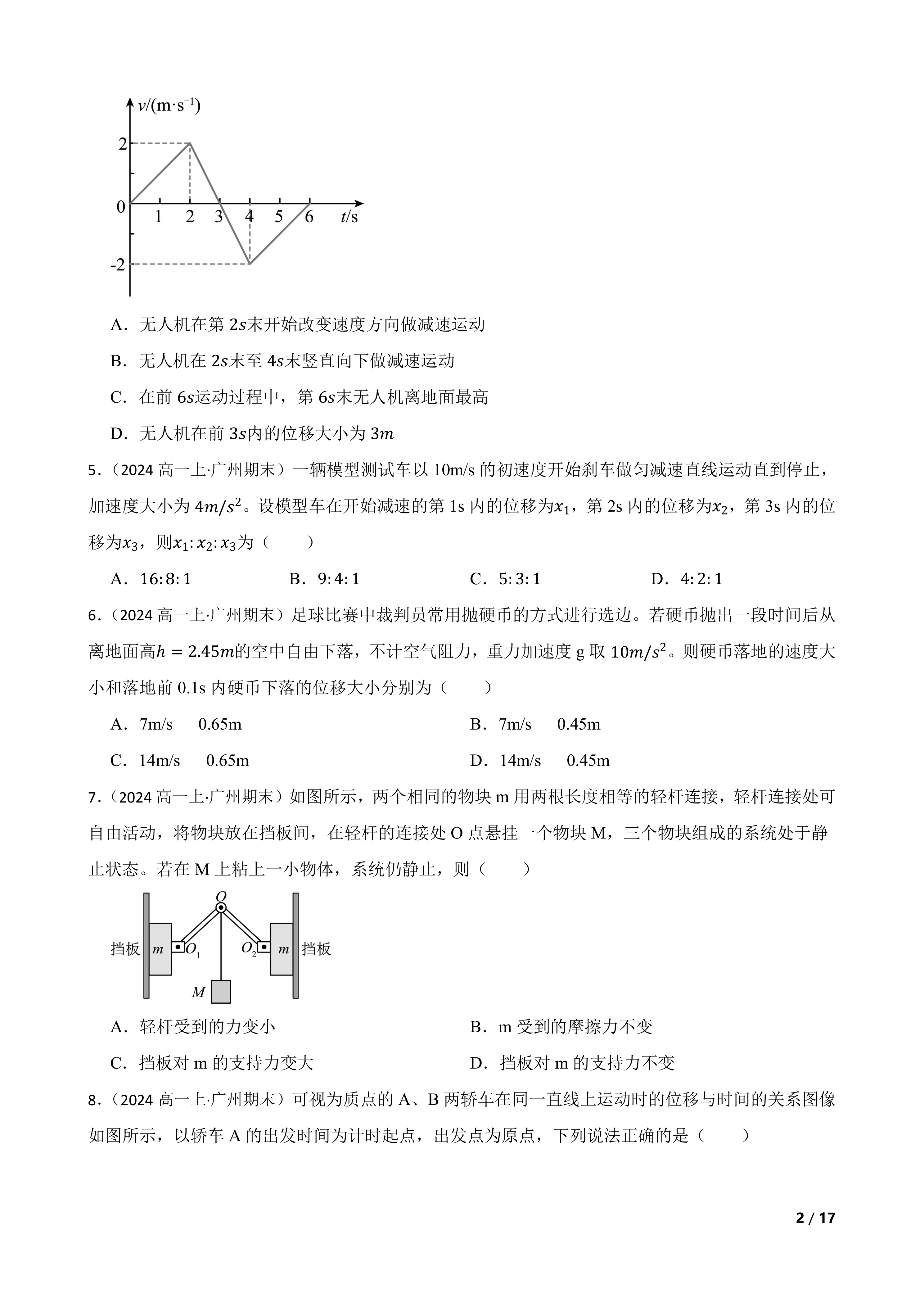 【精品解析】广东省广州市2024-2025学年高一上学期期末检测卷(一)物理试题