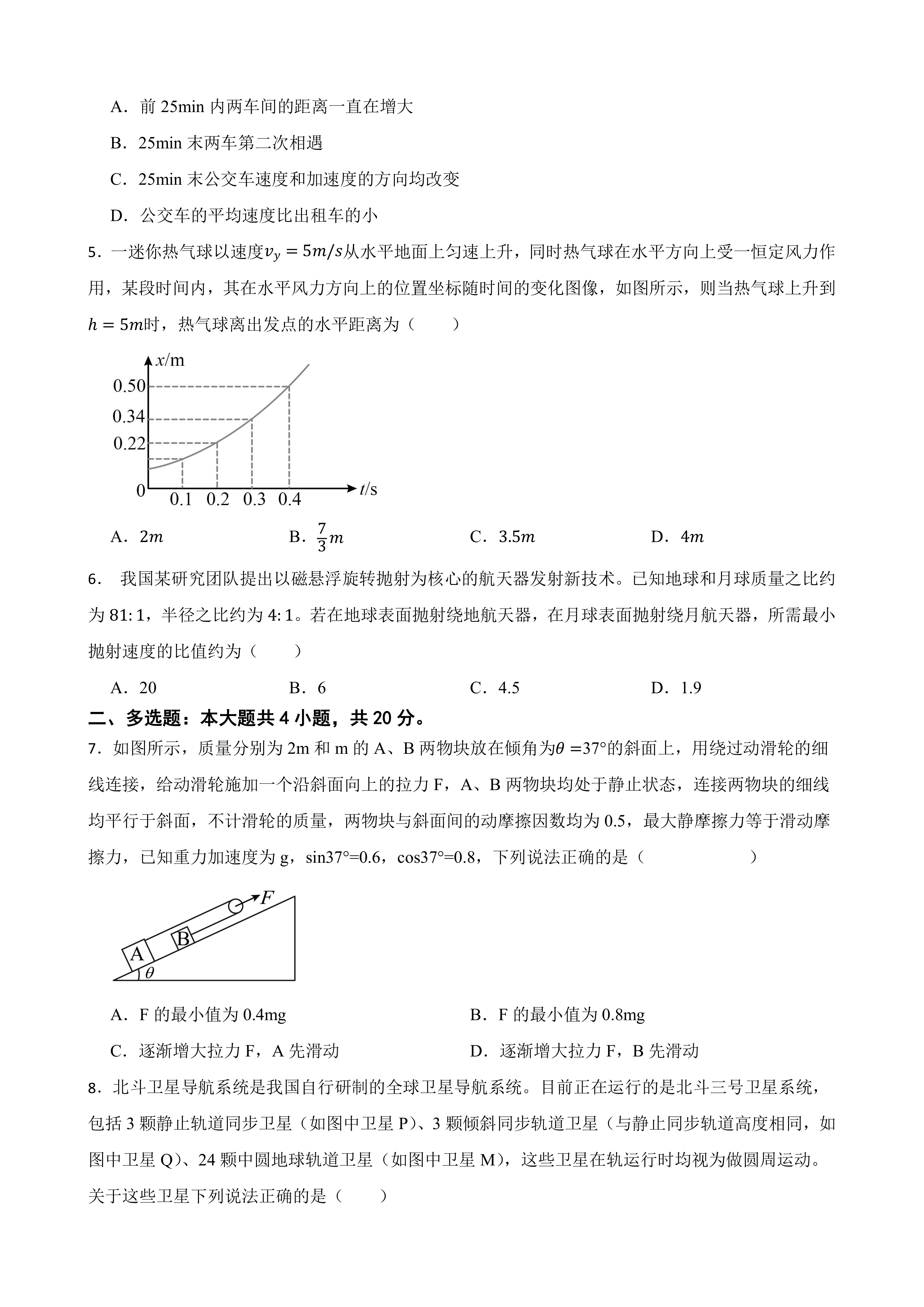 湖南省长沙市2024-2025学年高一(下)入学物理试卷(含答案)