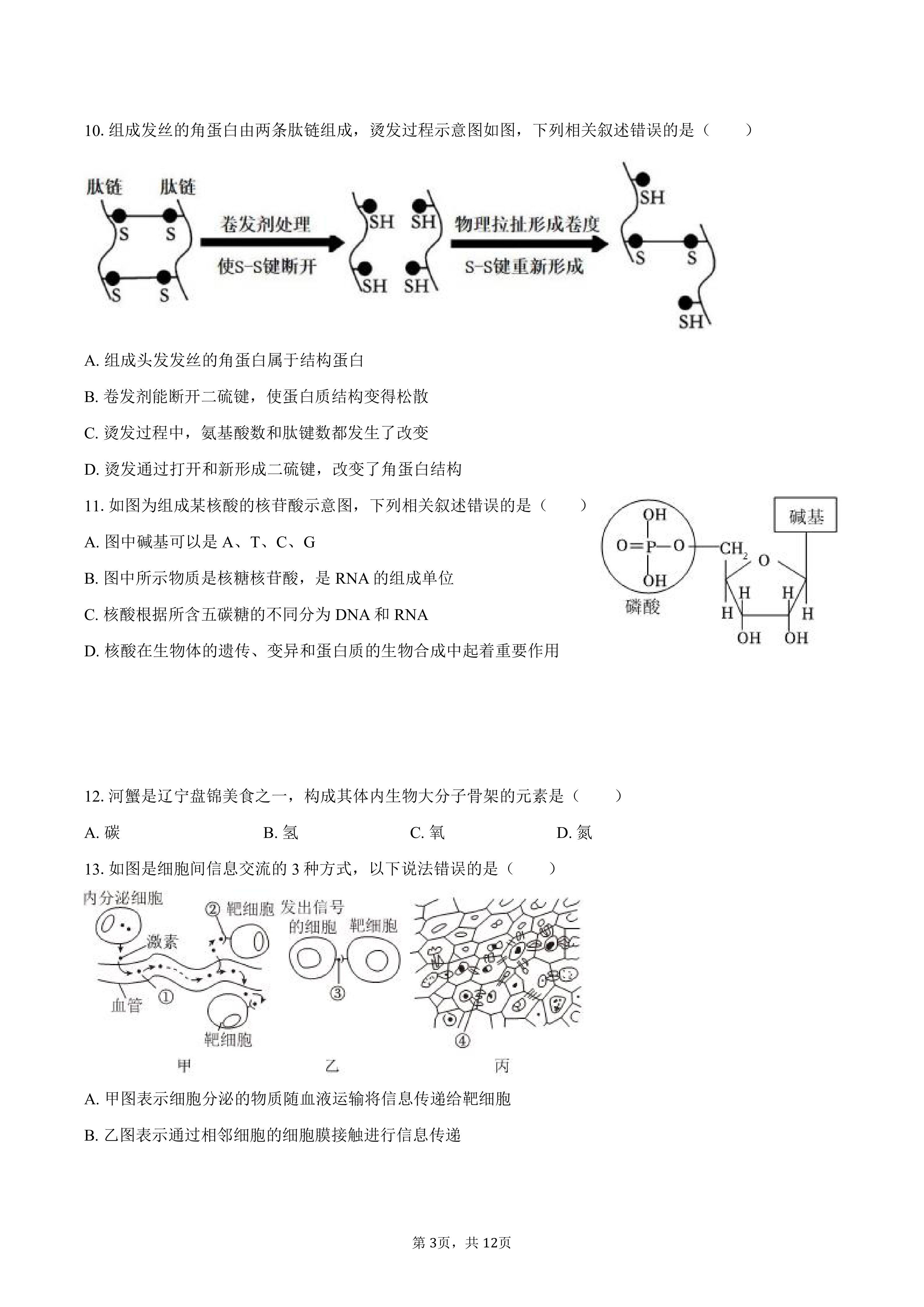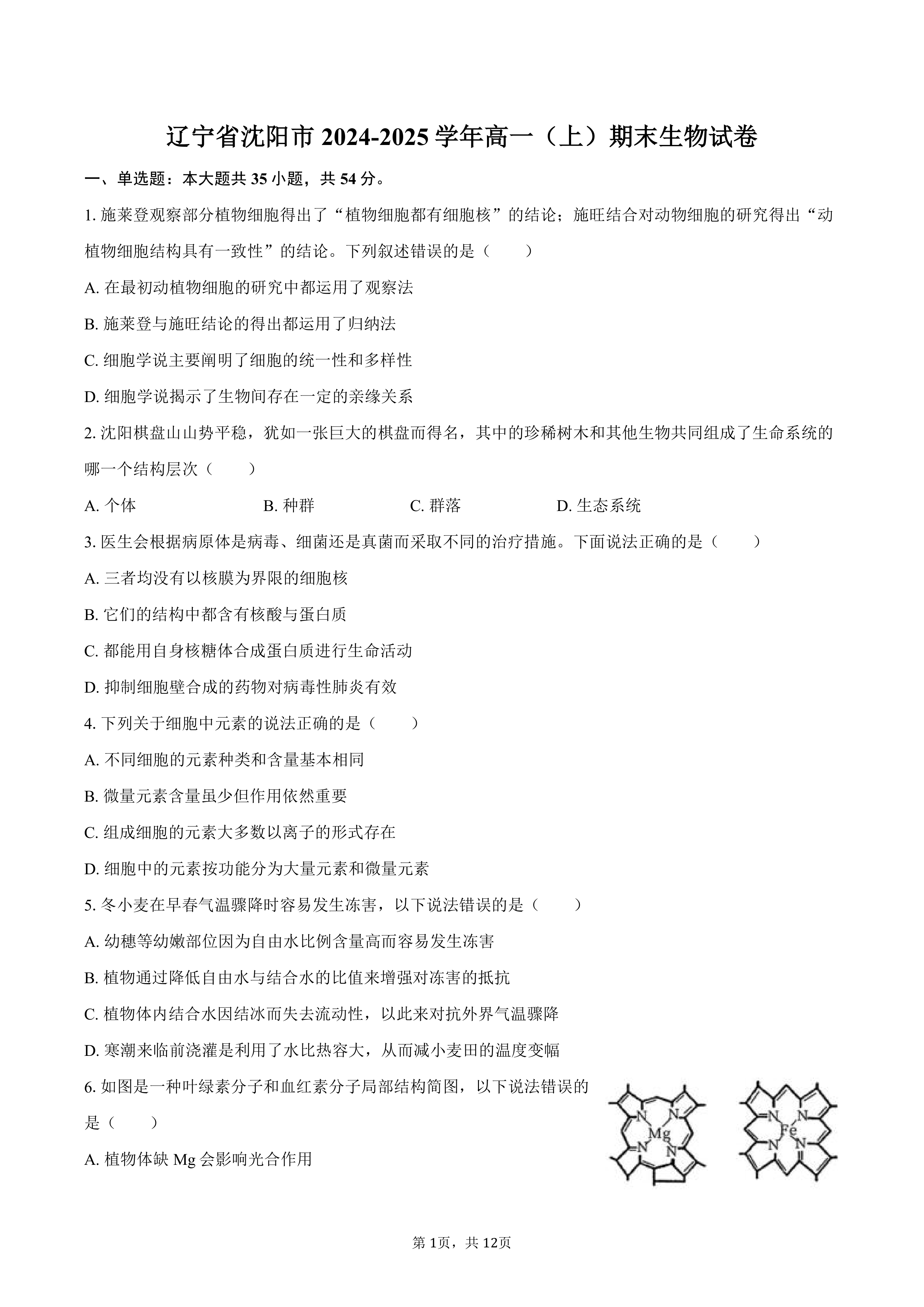 辽宁省沈阳市2024-2025学年高一(上)期末生物试卷(含答案)