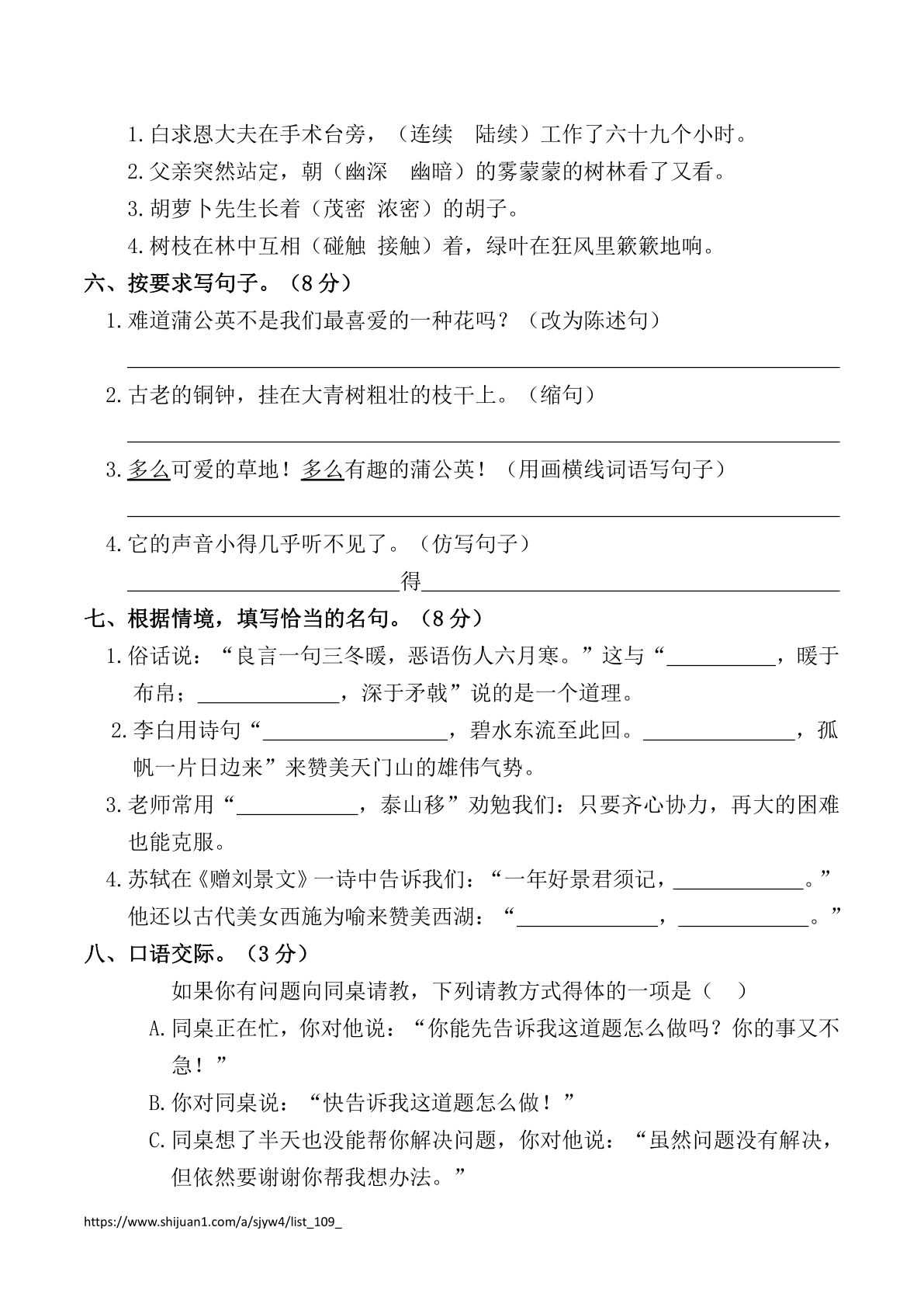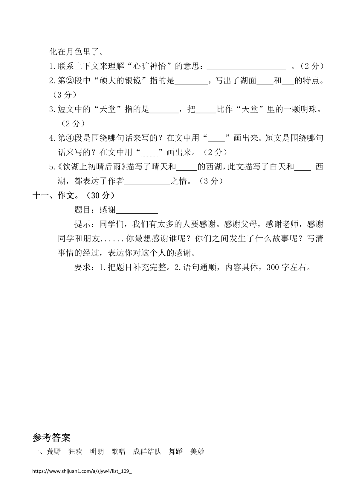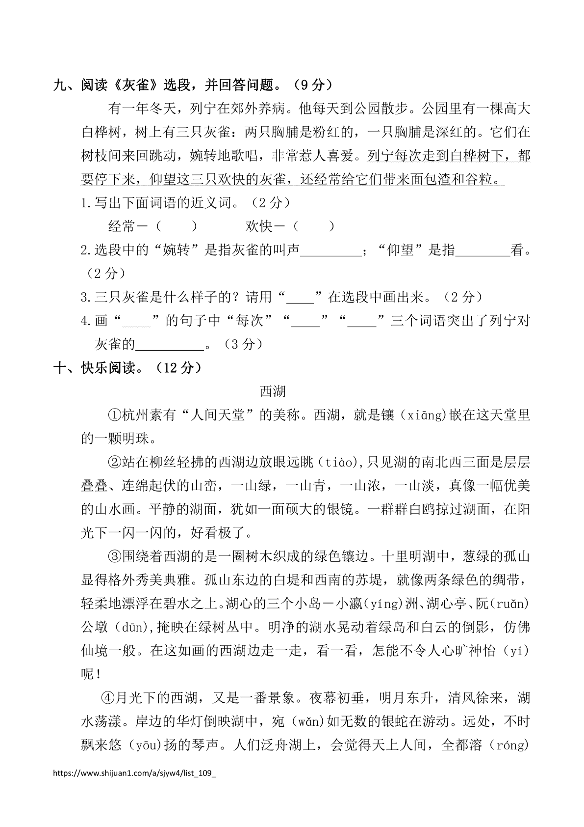 2021-2022年部编版三年级语文(上)期末精选全真卷(二)